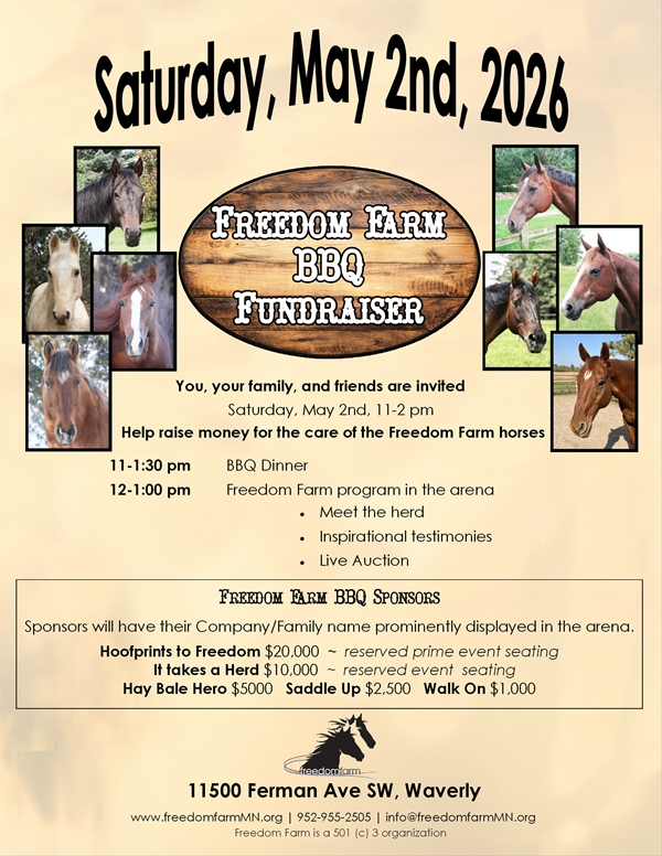 “It has been said that, ‘In riding a horse, we borrow freedom.’ In 2000, I decided to fulfill a dream to share that freedom with those whose lives, minds and bodies are not as free. Inspired by my life experiences and training, I opened my heart and the doors to Freedom Farm, a therapeutic riding center in Waverly, Minnesota.”