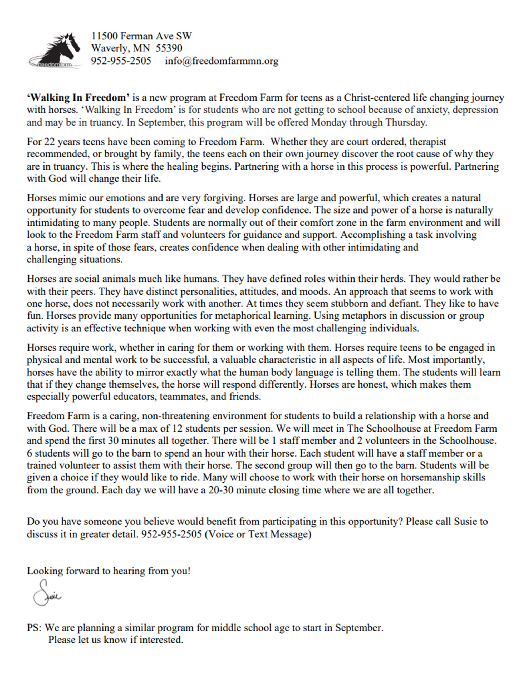 Walking in Freedom For Veterans and Teens Walking in Freedom participant Forms Walking In Freedom Participant 2026Download